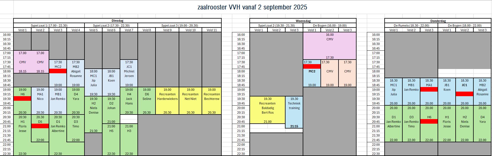 Dit is het zaalrooster vanaf 2 september 2025